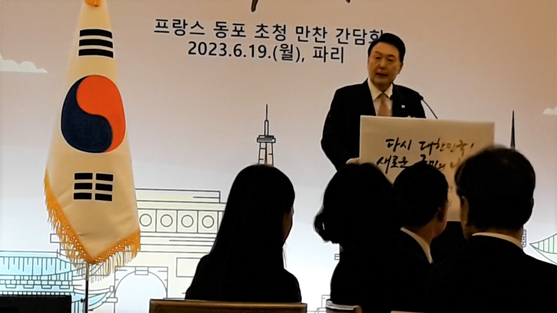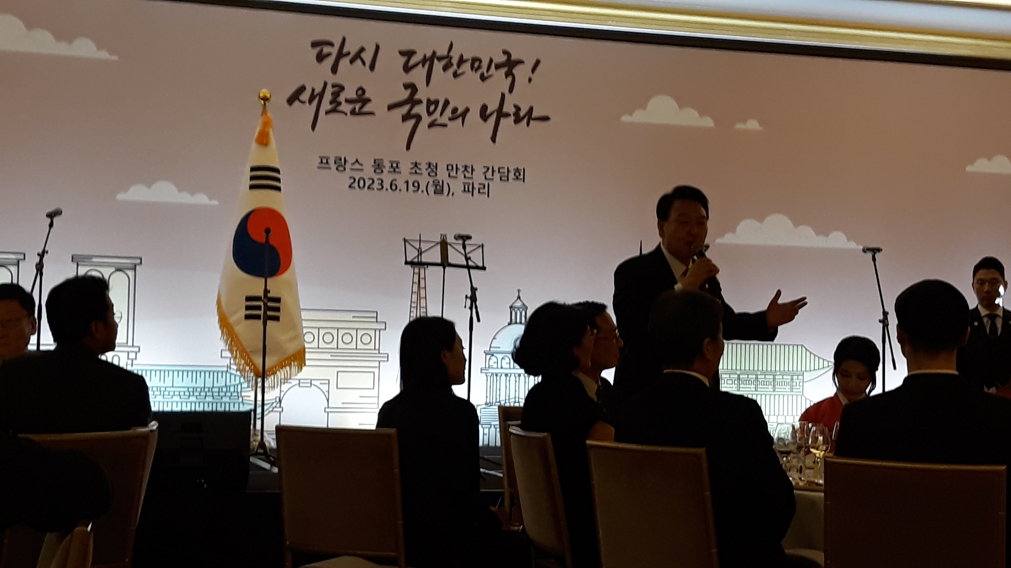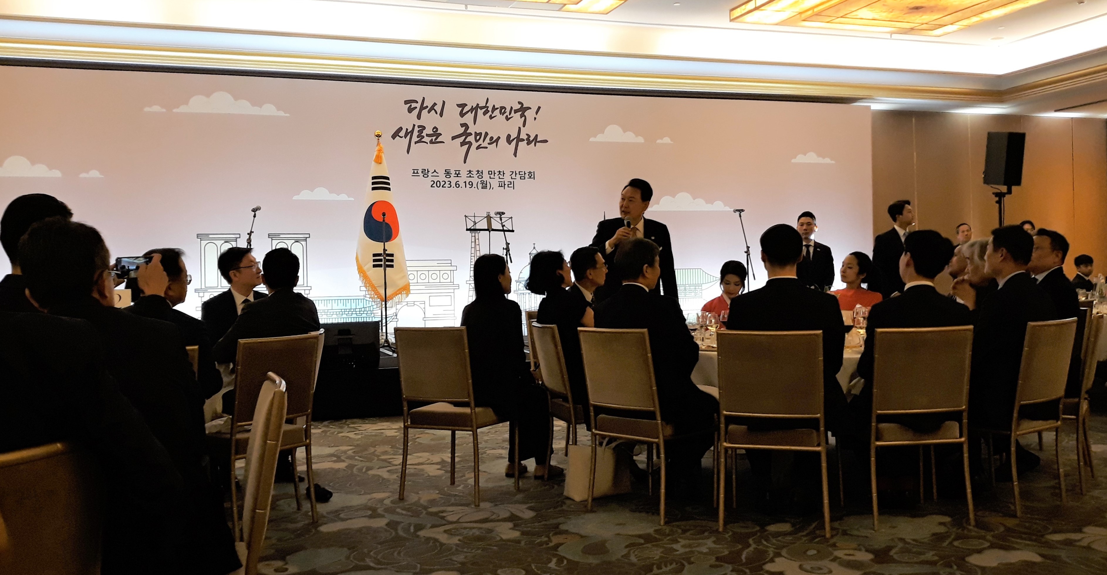 En visite officielle à Paris les 20 et 21 juin 2023, le Président de la République de Corée a convié la veille dans un grand hôtel parisien la communauté coréenne résidant en France.